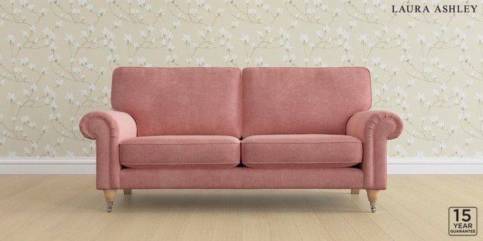 6.12.1 Buy Kingston by Laura Ashley 3 Seater Small Sofa Bainton Old Rose Pink Low Chrome Castor - Light Oak from the Laura Ashley online shop Click here to use our website with more accessibility support, for example screen readers
