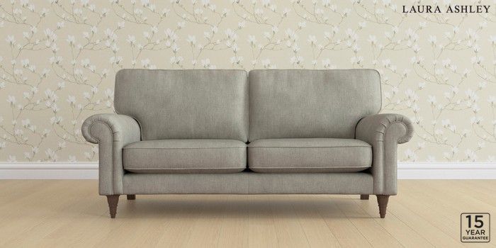 6.12.1 Buy Kingston by Laura Ashley 3 Seater Small Sofa Bainton Pale Steel Grey Low Turned - Chestnut from the Laura Ashley online shop Click here to use our website with more accessibility support, for example screen readers