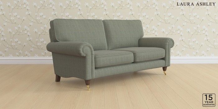 6.12.1 Buy Kingston by Laura Ashley 3 Seater Small Sofa Birchgrove Check Olive Green Low Brass Castor - Chestnut from the Laura Ashley online shop Click here to use our website with more accessibility support, for example screen readers