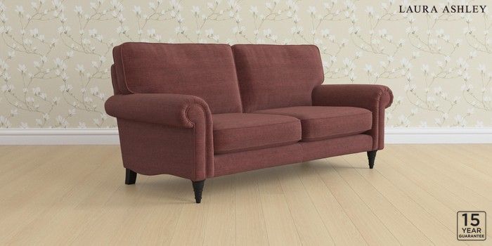 6.12.1 Buy Kingston by Laura Ashley 3 Seater Small Sofa Edwin Chenille Burgundy Red Low Turned - Black from the Laura Ashley online shop Click here to use our website with more accessibility support, for example screen readers