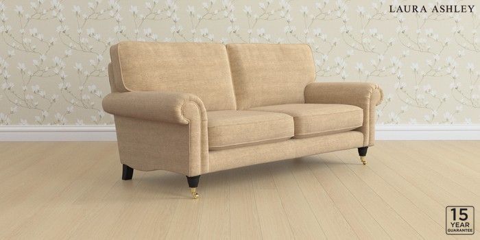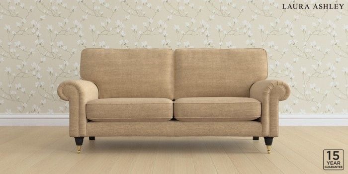 6.12.1 Buy Kingston by Laura Ashley 3 Seater Small Sofa Edwin Chenille Gold Natural Low Brass Castor - Black from the Laura Ashley online shop Click here to use our website with more accessibility support, for example screen readers