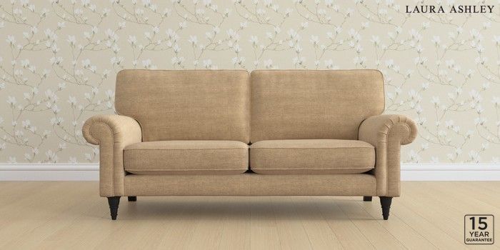 6.12.13 Buy Kingston by Laura Ashley 3 Seater Small Sofa Edwin Chenille Gold Natural Low Turned - Black from the Laura Ashley online shop Click here to use our website with more accessibility support, for example screen readers