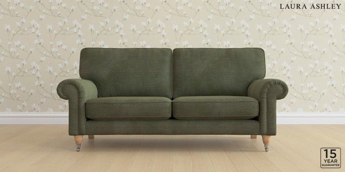 6.12.1 Buy Kingston by Laura Ashley 3 Seater Small Sofa Edwin Chenille Hedgerow Green Low Chrome Castor - Light Oak from the Laura Ashley online shop Click here to use our website with more accessibility support, for example screen readers