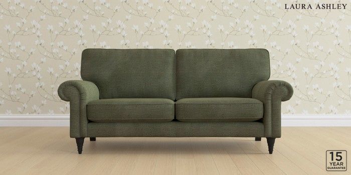 6.12.1 Buy Kingston by Laura Ashley 3 Seater Small Sofa Edwin Chenille Hedgerow Green Low Turned - Black from the Laura Ashley online shop Click here to use our website with more accessibility support, for example screen readers