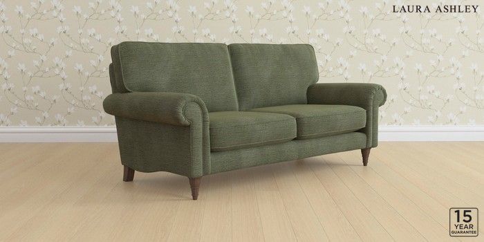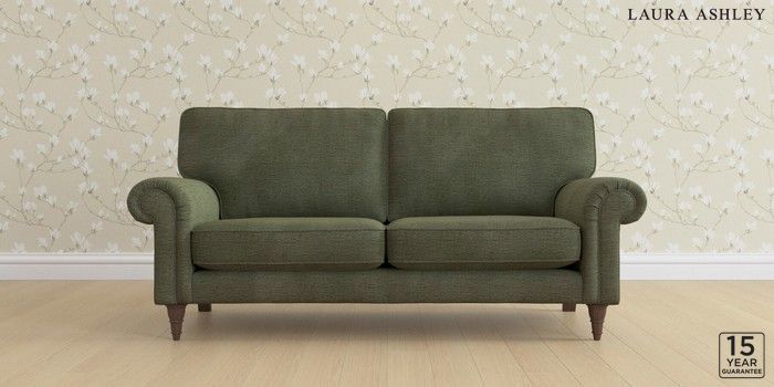6.12.1 Buy Kingston by Laura Ashley 3 Seater Small Sofa Edwin Chenille Hedgerow Green Low Turned - Chestnut from the Laura Ashley online shop Click here to use our website with more accessibility support, for example screen readers