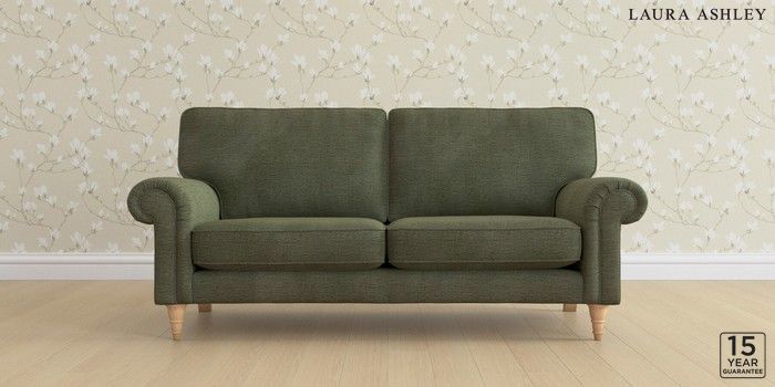 6.12.1 Buy Kingston by Laura Ashley 3 Seater Small Sofa Edwin Chenille Hedgerow Green Low Turned - Light Oak from the Laura Ashley online shop Click here to use our website with more accessibility support, for example screen readers