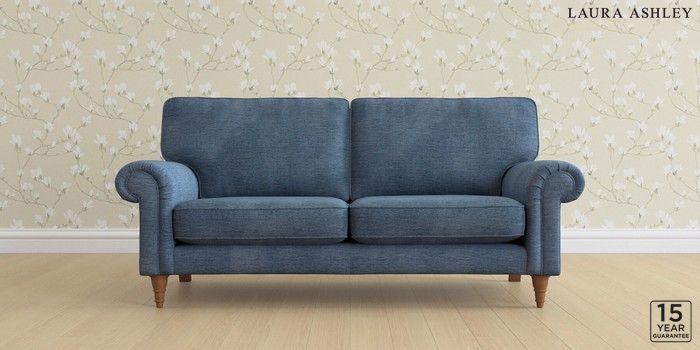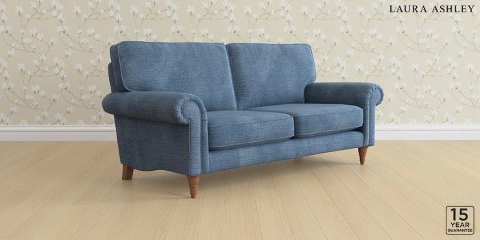 6.12.1 Buy Kingston by Laura Ashley 3 Seater Small Sofa Edwin Chenille Seaspray Blue Low Turned - Teak from the Laura Ashley online shop Click here to use our website with more accessibility support, for example screen readers