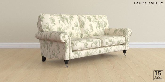 6.12.13 Buy Kingston by Laura Ashley 3 Seater Small Sofa Gosford Weave Sage Green Low Chrome Castor - Black from the Laura Ashley online shop Click here to use our website with more accessibility support, for example screen readers
