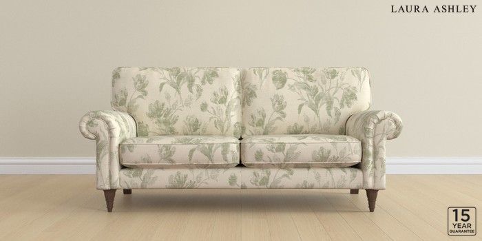 6.12.1 Buy Kingston by Laura Ashley 3 Seater Small Sofa Gosford Weave Sage Green Low Turned - Chestnut from the Laura Ashley online shop Click here to use our website with more accessibility support, for example screen readers