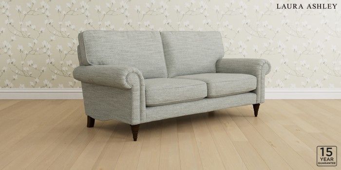 6.12.1 Buy Kingston by Laura Ashley 3 Seater Small Sofa Harley Dove Grey Low Turned - Chestnut from the Laura Ashley online shop Click here to use our website with more accessibility support, for example screen readers