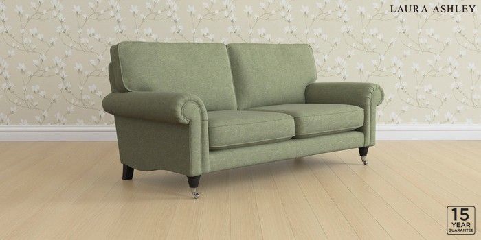 6.12.13 Buy Kingston by Laura Ashley 3 Seater Small Sofa Harley Moss Green Low Chrome Castor - Black from the Laura Ashley online shop Click here to use our website with more accessibility support, for example screen readers