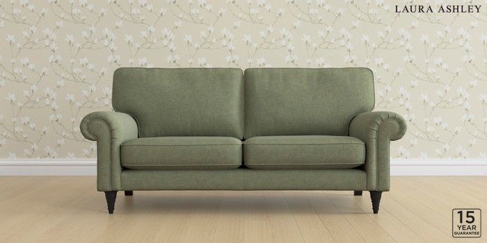 6.12.1 Buy Kingston by Laura Ashley 3 Seater Small Sofa Harley Moss Green Low Turned - Black from the Laura Ashley online shop Click here to use our website with more accessibility support, for example screen readers