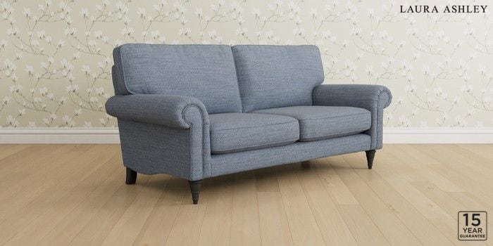 6.12.13 Buy Kingston by Laura Ashley 3 Seater Small Sofa Harley Seaspray Blue Low Turned - Black from the Laura Ashley online shop Click here to use our website with more accessibility support, for example screen readers