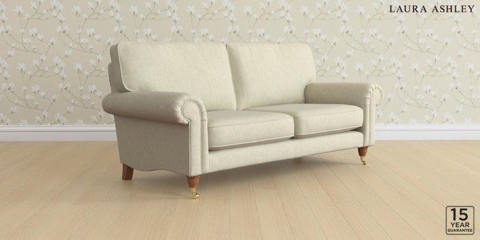 6.12.1 Buy Kingston by Laura Ashley 3 Seater Small Sofa Kinsham Natural Low Brass Castor - Teak from the Laura Ashley online shop Click here to use our website with more accessibility support, for example screen readers