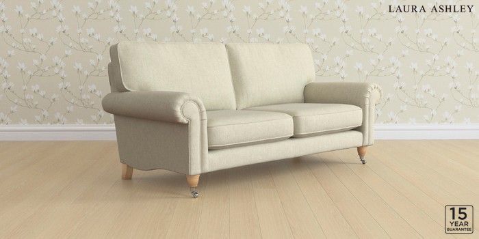 6.12.13 Buy Kingston by Laura Ashley 3 Seater Small Sofa Kinsham Natural Low Chrome Castor - Light Oak from the Laura Ashley online shop Click here to use our website with more accessibility support, for example screen readers