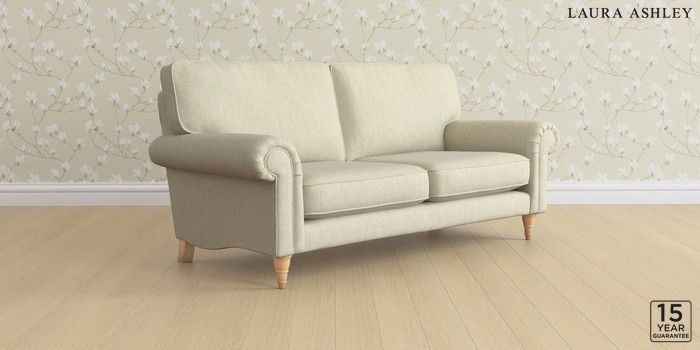 6.12.1 Buy Kingston by Laura Ashley 3 Seater Small Sofa Kinsham Natural Low Turned - Light Oak from the Laura Ashley online shop Click here to use our website with more accessibility support, for example screen readers