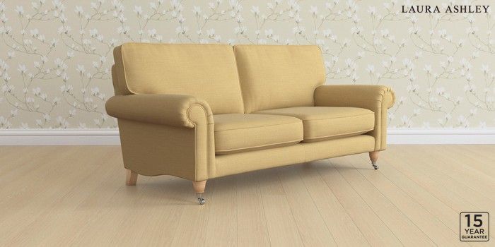 6.12.1 Buy Kingston by Laura Ashley 3 Seater Small Sofa Kinsham Ochre Yellow Low Chrome Castor - Light Oak from the Laura Ashley online shop Click here to use our website with more accessibility support, for example screen readers
