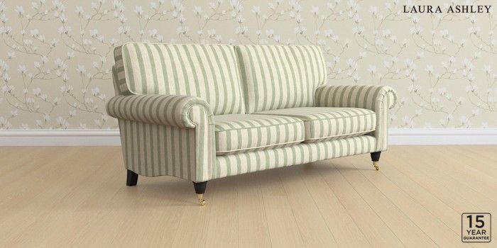 6.12.1 Buy Kingston by Laura Ashley 3 Seater Small Sofa Kinsham Stripe Hedgerow Green Low Brass Castor - Black from the Laura Ashley online shop Click here to use our website with more accessibility support, for example screen readers
