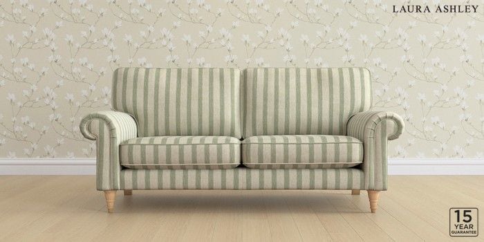 6.12.1 Buy Kingston by Laura Ashley 3 Seater Small Sofa Kinsham Stripe Hedgerow Green Low Turned - Light Oak from the Laura Ashley online shop Click here to use our website with more accessibility support, for example screen readers