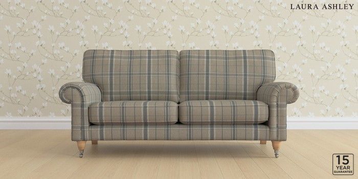 6.12.1 Buy Kingston by Laura Ashley 3 Seater Small Sofa Longstowe Check French Grey Low Chrome Castor - Light Oak from the Laura Ashley online shop Click here to use our website with more accessibility support, for example screen readers