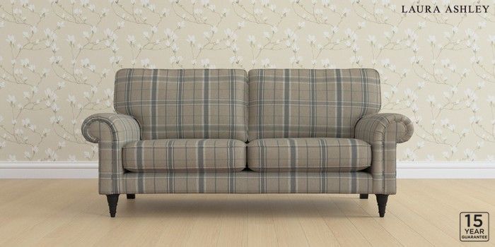 6.12.1 Buy Kingston by Laura Ashley 3 Seater Small Sofa Longstowe Check French Grey Low Turned - Black from the Laura Ashley online shop Click here to use our website with more accessibility support, for example screen readers