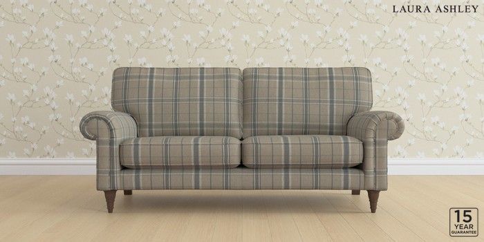 6.12.1 Buy Kingston by Laura Ashley 3 Seater Small Sofa Longstowe Check French Grey Low Turned - Chestnut from the Laura Ashley online shop Click here to use our website with more accessibility support, for example screen readers
