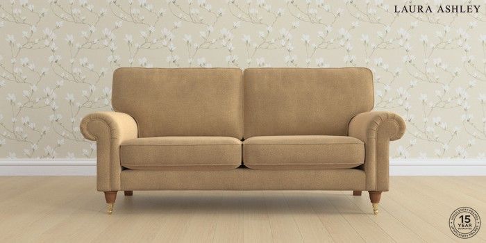 6.12.1 Buy Kingston by Laura Ashley 3 Seater Small Sofa Lundar Chenille Caramel Natural Low Brass Castor - Teak from the Laura Ashley online shop Click here to use our website with more accessibility support, for example screen readers