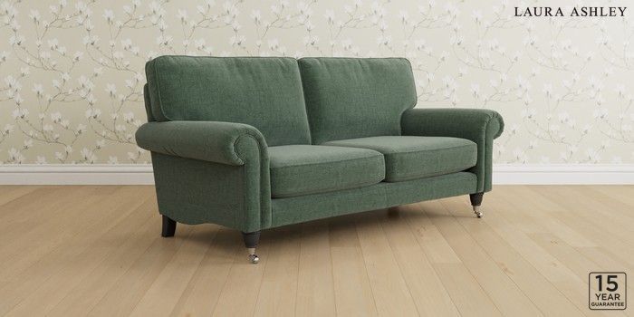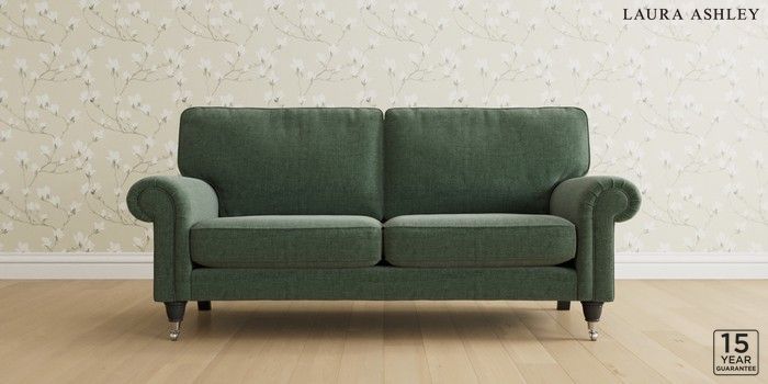 6.12.13 Buy Kingston by Laura Ashley 3 Seater Small Sofa Nantmor Fern Green Low Chrome Castor - Black from the Laura Ashley online shop Click here to use our website with more accessibility support, for example screen readers