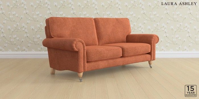6.12.1 Buy Kingston by Laura Ashley 3 Seater Small Sofa Nantmor Rust Orange Low Chrome Castor - Light Oak from the Laura Ashley online shop Click here to use our website with more accessibility support, for example screen readers