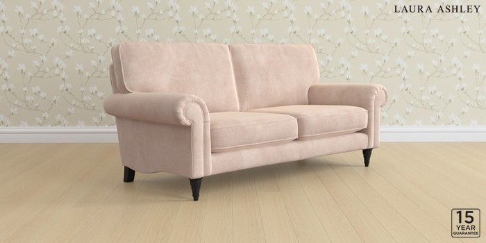 6.12.1 Buy Kingston by Laura Ashley 3 Seater Small Sofa Orla Chalk Pink Low Turned - Black from the Laura Ashley online shop Click here to use our website with more accessibility support, for example screen readers