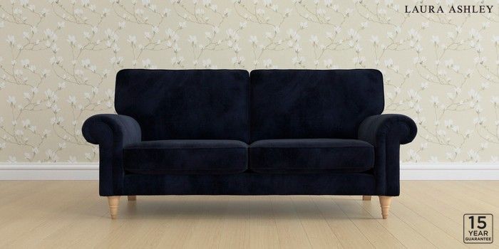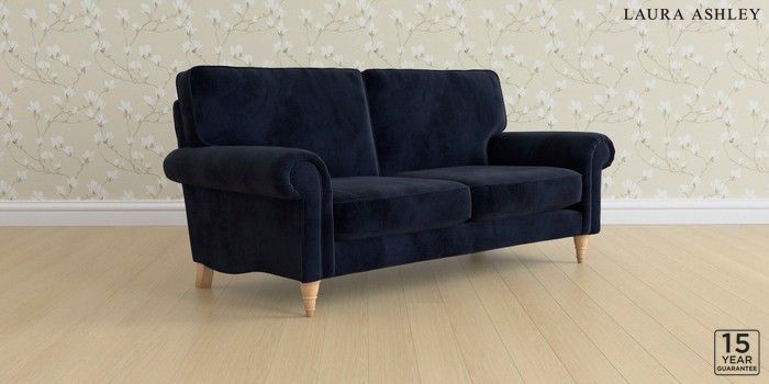 6.12.1 Buy Kingston by Laura Ashley 3 Seater Small Sofa Orla Midnight Navy Low Turned - Light Oak from the Laura Ashley online shop Click here to use our website with more accessibility support, for example screen readers