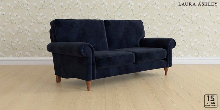 6.12.1 Buy Kingston by Laura Ashley 3 Seater Small Sofa Orla Midnight Navy Low Turned - Teak from the Laura Ashley online shop Click here to use our website with more accessibility support, for example screen readers