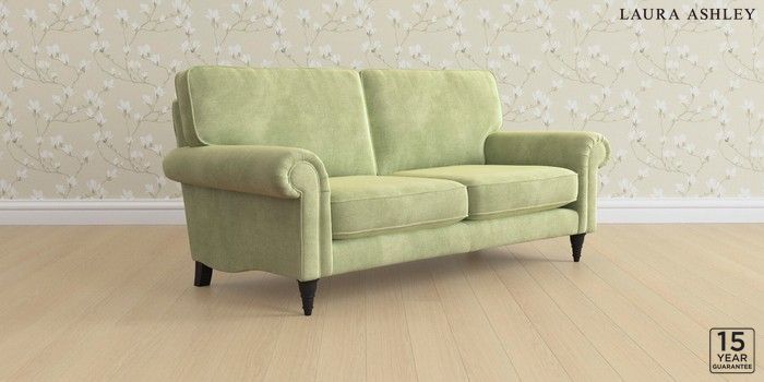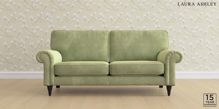 6.12.1 Buy Kingston by Laura Ashley 3 Seater Small Sofa Orla Pale Hedgerow Green Low Turned - Black from the Laura Ashley online shop Click here to use our website with more accessibility support, for example screen readers