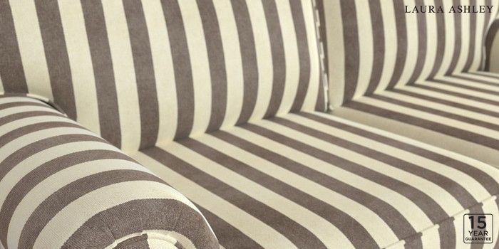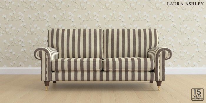 6.12.1 Buy Kingston by Laura Ashley 3 Seater Small Sofa Orla Stripe Dark Truffle Natural Low Brass Castor - Chestnut from the Laura Ashley online shop Click here to use our website with more accessibility support, for example screen readers
