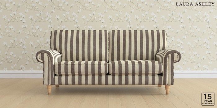 6.12.1 Buy Kingston by Laura Ashley 3 Seater Small Sofa Orla Stripe Dark Truffle Natural Low Turned - Light Oak from the Laura Ashley online shop Click here to use our website with more accessibility support, for example screen readers