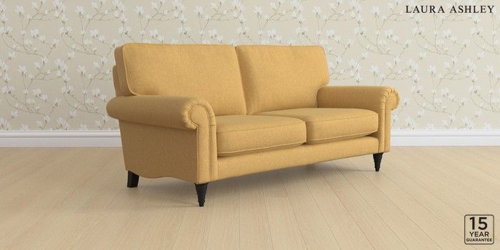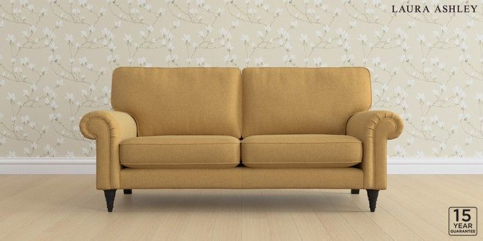 6.12.1 Buy Kingston by Laura Ashley 3 Seater Small Sofa Peyton Ochre Yellow Low Turned - Black from the Laura Ashley online shop Click here to use our website with more accessibility support, for example screen readers
