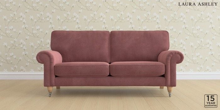 6.12.1 Buy Kingston by Laura Ashley 3 Seater Small Sofa Peyton Plum Purple Low Chrome Castor - Light Oak from the Laura Ashley online shop Click here to use our website with more accessibility support, for example screen readers