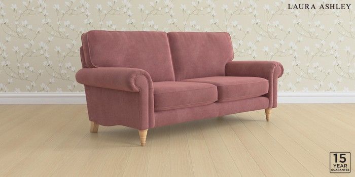 6.12.1 Buy Kingston by Laura Ashley 3 Seater Small Sofa Peyton Plum Purple Low Turned - Light Oak from the Laura Ashley online shop Click here to use our website with more accessibility support, for example screen readers