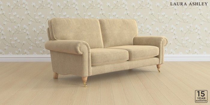 6.12.1 Buy Kingston by Laura Ashley 3 Seater Small Sofa Peyton Sable Natural Low Brass Castor - Light Oak from the Laura Ashley online shop Click here to use our website with more accessibility support, for example screen readers