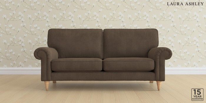 6.12.1 Buy Kingston by Laura Ashley 3 Seater Small Sofa Sinclair Cord Chocolate Brown Low Turned - Light Oak from the Laura Ashley online shop Click here to use our website with more accessibility support, for example screen readers