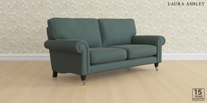 6.12.1 Buy Kingston by Laura Ashley 3 Seater Small Sofa Wooton Forest Green Low Chrome Castor - Black from the Laura Ashley online shop Click here to use our website with more accessibility support, for example screen readers