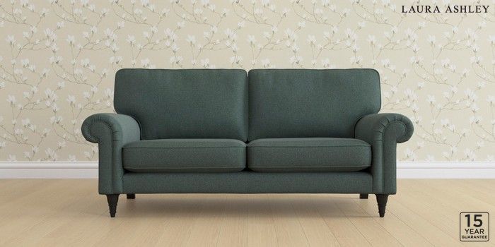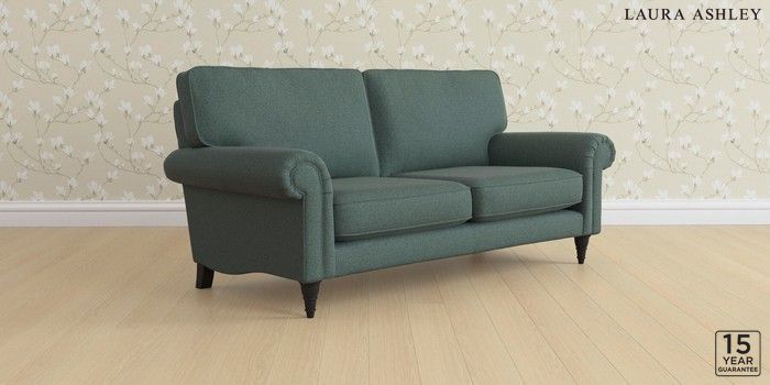 6.12.1 Buy Kingston by Laura Ashley 3 Seater Small Sofa Wooton Forest Green Low Turned - Black from the Laura Ashley online shop Click here to use our website with more accessibility support, for example screen readers