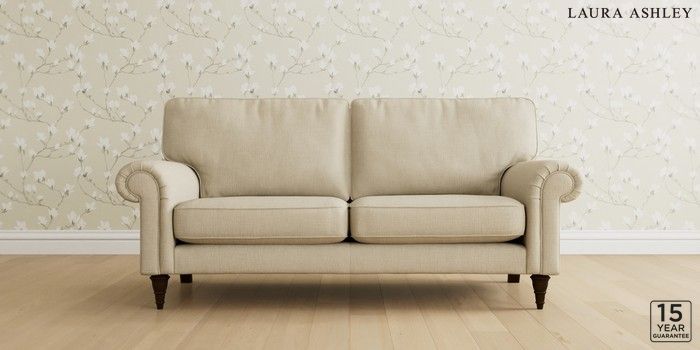 6.12.1 Buy Kingston by Laura Ashley 3 Seater Small Sofa Wooton Natural Low Turned - Chestnut from the Laura Ashley online shop Click here to use our website with more accessibility support, for example screen readers