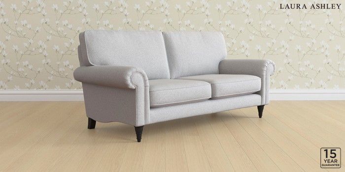 6.12.1 Buy Kingston by Laura Ashley 3 Seater Small Sofa Wooton Pale Steel Grey Low Turned - Black from the Laura Ashley online shop Click here to use our website with more accessibility support, for example screen readers