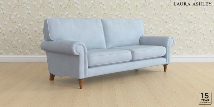 6.12.1 Buy Kingston by Laura Ashley 3 Seater Sofa Ailsworth Newport Blue Low Turned - Teak from the Laura Ashley online shop Click here to use our website with more accessibility support, for example screen readers