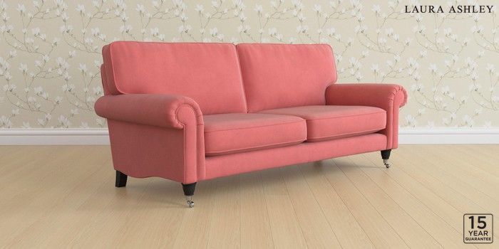 6.12.1 Buy Kingston by Laura Ashley 3 Seater Sofa Ailsworth Old Rose Pink Low Chrome Castor - Black from the Laura Ashley online shop Click here to use our website with more accessibility support, for example screen readers