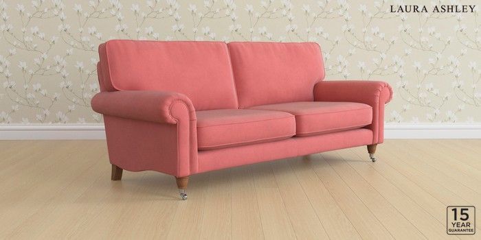 6.12.1 Buy Kingston by Laura Ashley 3 Seater Sofa Ailsworth Old Rose Pink Low Chrome Castor - Teak from the Laura Ashley online shop Click here to use our website with more accessibility support, for example screen readers