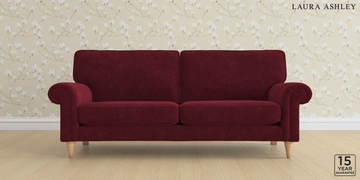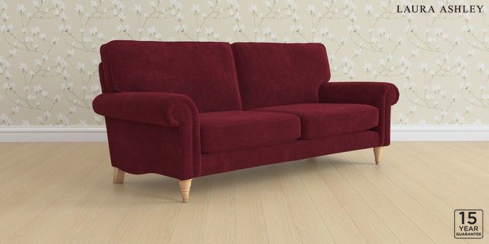 6.12.1 Buy Kingston by Laura Ashley 3 Seater Sofa Alwyn Velvet Burgundy Red Low Turned - Light Oak from the Laura Ashley online shop Click here to use our website with more accessibility support, for example screen readers