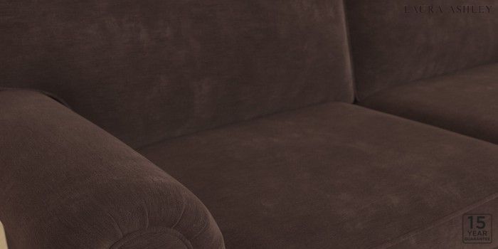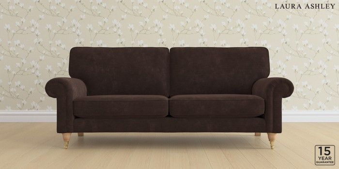 6.12.13 Buy Kingston by Laura Ashley 3 Seater Sofa Alwyn Velvet Chocolate Brown Low Brass Castor - Light Oak from the Laura Ashley online shop Click here to use our website with more accessibility support, for example screen readers