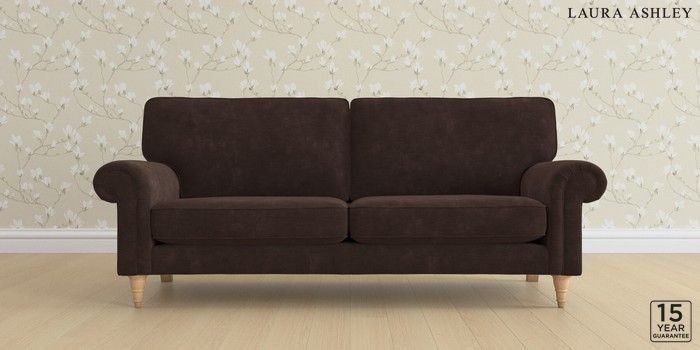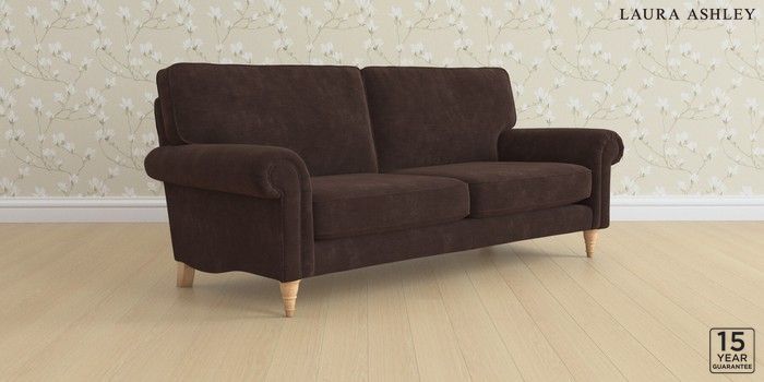 6.12.1 Buy Kingston by Laura Ashley 3 Seater Sofa Alwyn Velvet Chocolate Brown Low Turned - Light Oak from the Laura Ashley online shop Click here to use our website with more accessibility support, for example screen readers